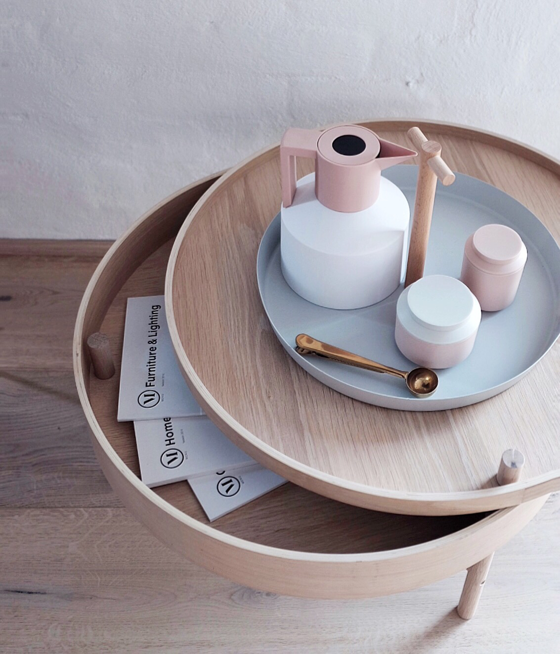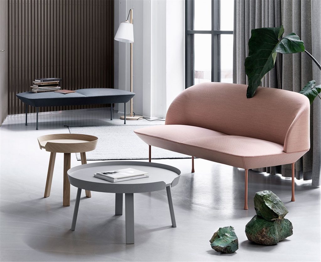 Bàn cà phê tròn thích hợp cùng kiểu ghế mềm mại, thư giãn. Ảnh: muuto.com