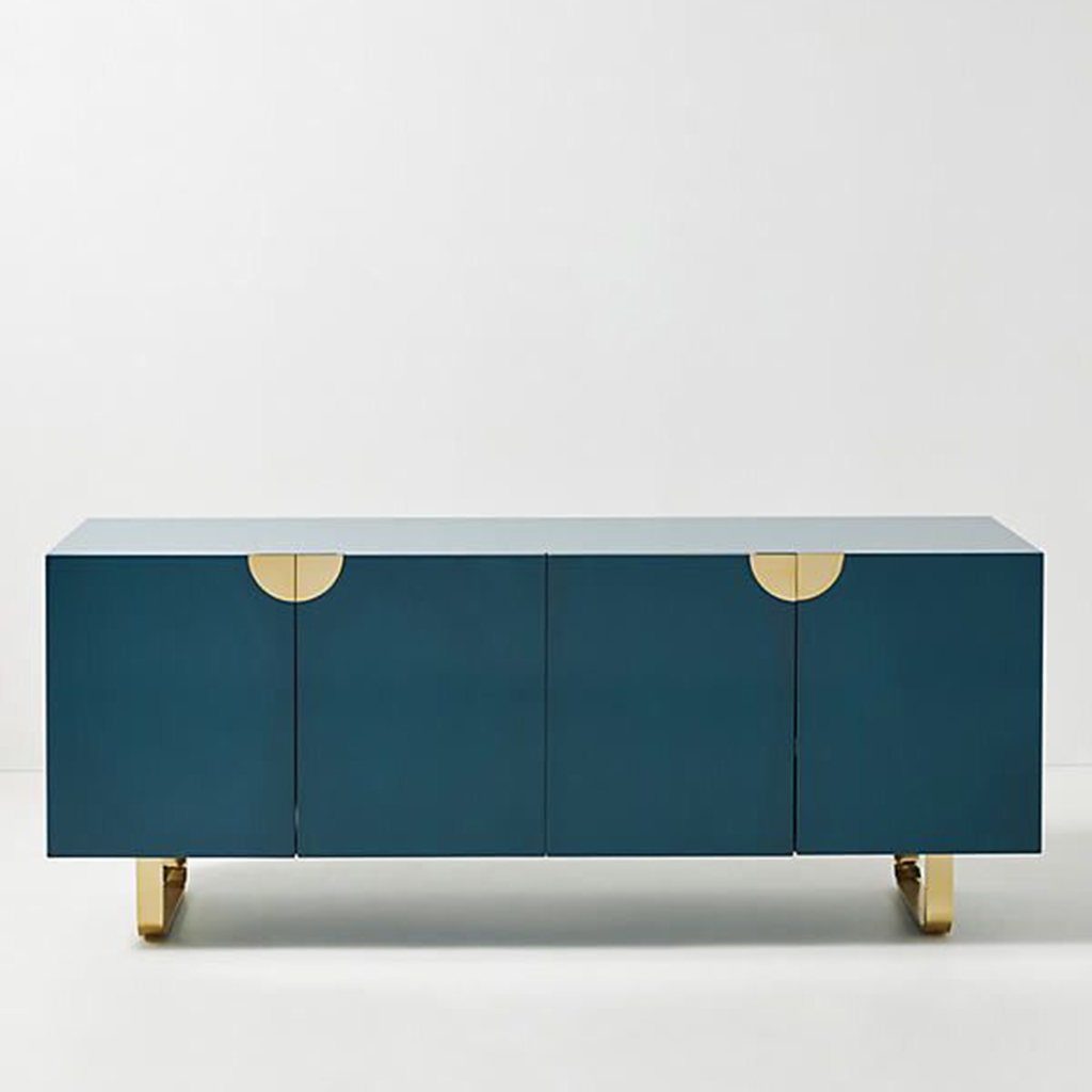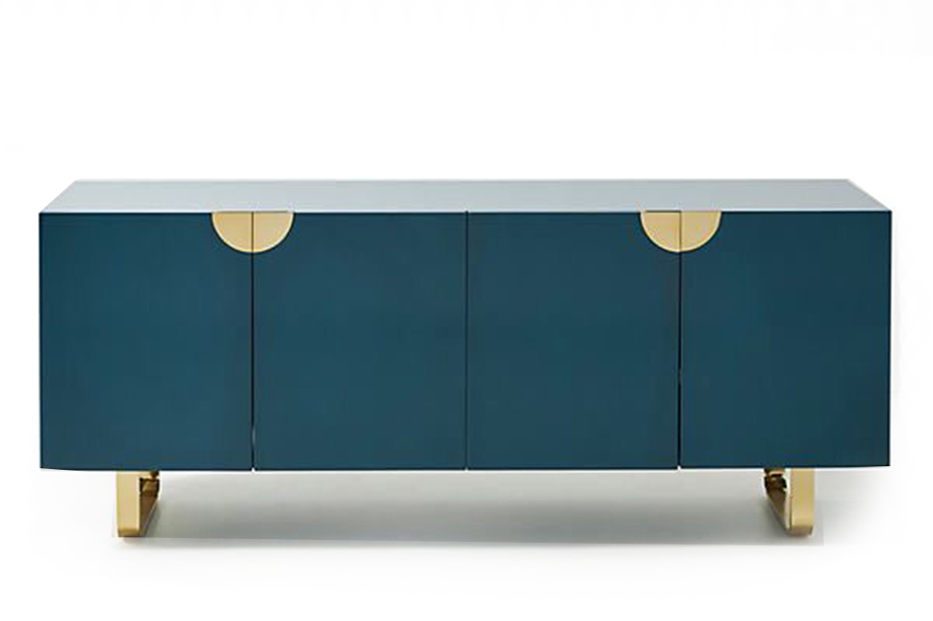 Moon có tay nắm màu vàng được làm từ inox mạ vàng bóng sáng loáng làm bật lên trên nền xanh của thùng tủ, dễ dàng thao tác. Moon có thể đặt ở phòng ăn hoặc sảnh chờ hoặc điểm kết thúc hành lang khá bắt mắt và lộng lẫy