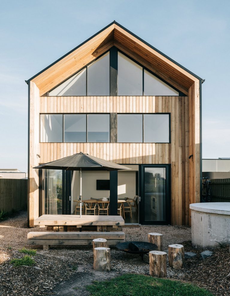 Không gian sân trước và sân sau của ngôi nhà gỗ bên bãi biển Cape Paterson.