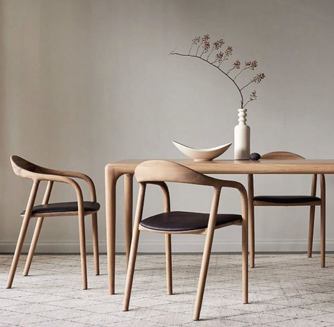 Vật liệu: có các loại: gỗ Ash màu tự nhiên, gỗ sồi màu tự nhiên, gỗ sồi màu walnut, gỗ walnut. Nệm bọc vải hoặc da