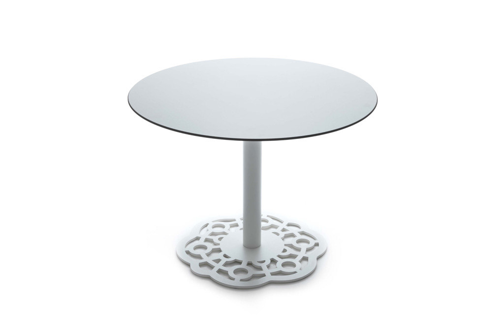 Chân: gang đúc và nhôm sơn tĩnh điện Mặt bàn: nhôm đúc sơn tĩnh điện