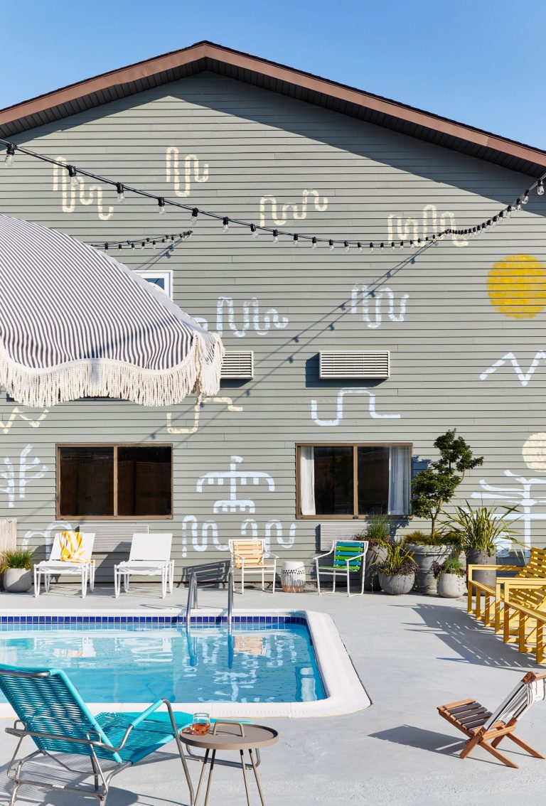 Tọa lạc tại Rhode Island, The Wayfinder hotel là dự án cải tạo khách sạn do văn phòng thiết kế Reunion Goods & Services thực hiện theo định hướng về không gian đầy màu sắc bên lò sưởi và những góc trò chuyện ấm cúng. Công trình quy mô 197 phòng nghỉ bao gồm nhà hàng, sảnh đón, sân trong và cả khu vực hồ bơi. Nhóm thiết kế đã định hình hướng phát triển không gian thành một ngôi nhà lớn, nhiều tông màu rực rỡ và chan hòa ánh sáng.